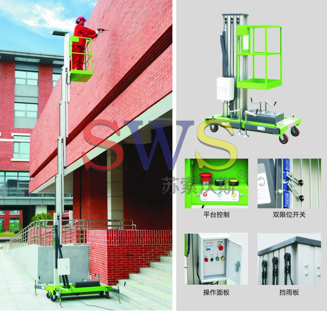 升降桅柱全部用用高強(qiáng)度鋁合金型材,整機(jī)重量輕,移動十分方便。